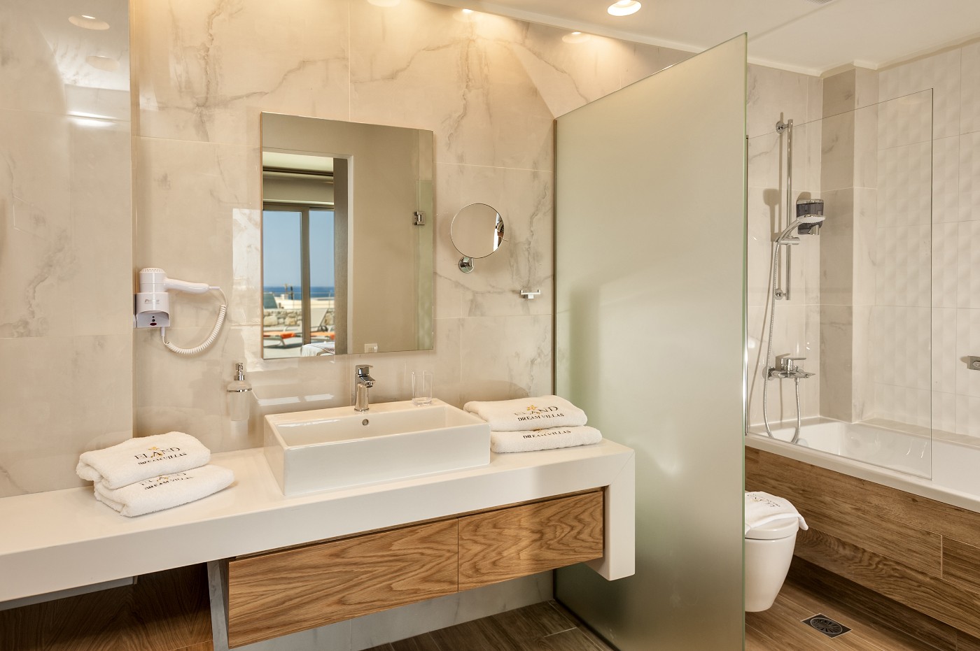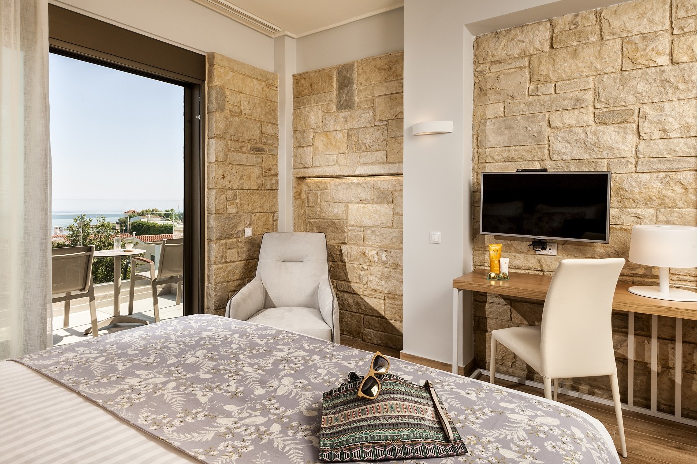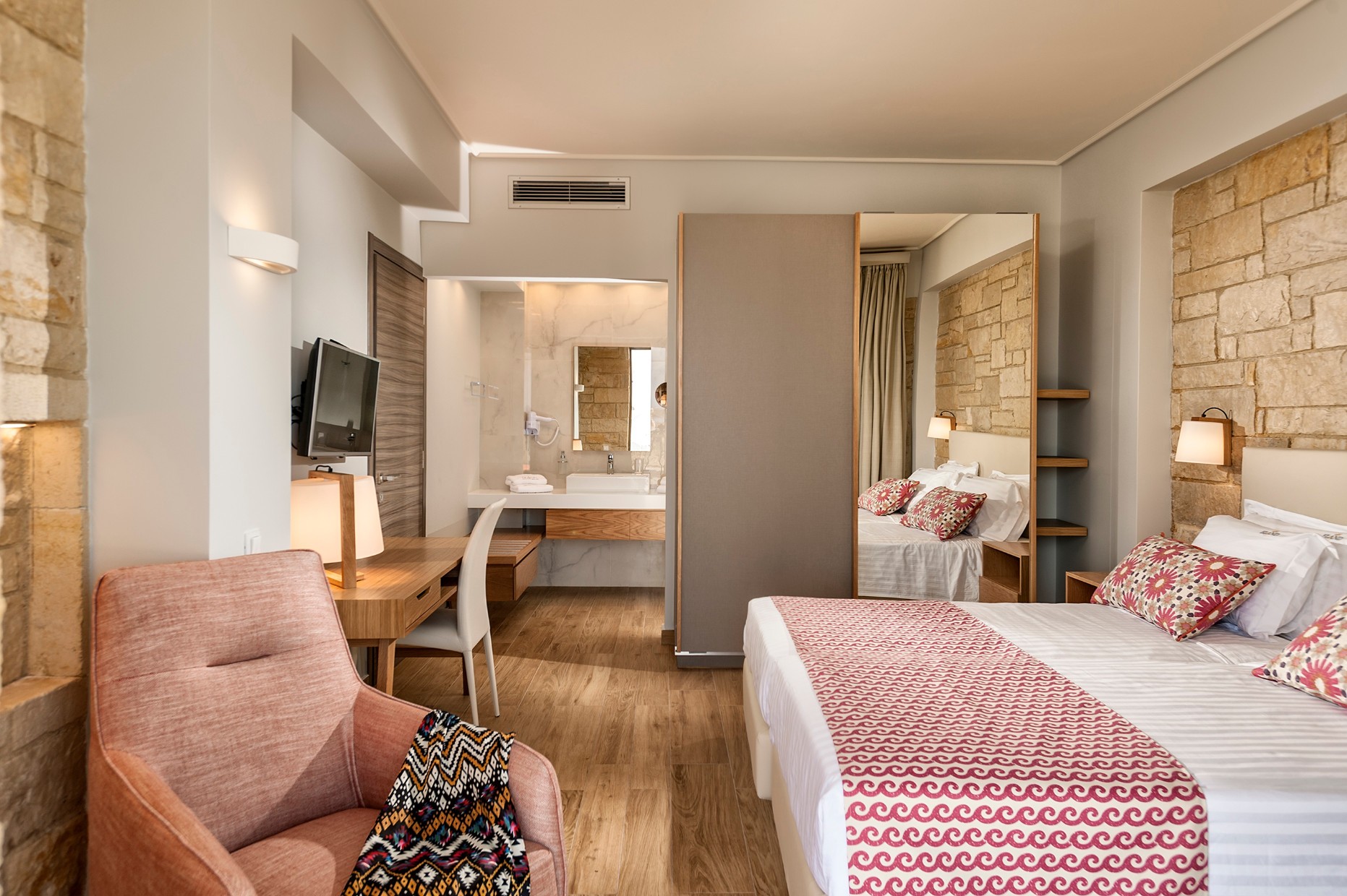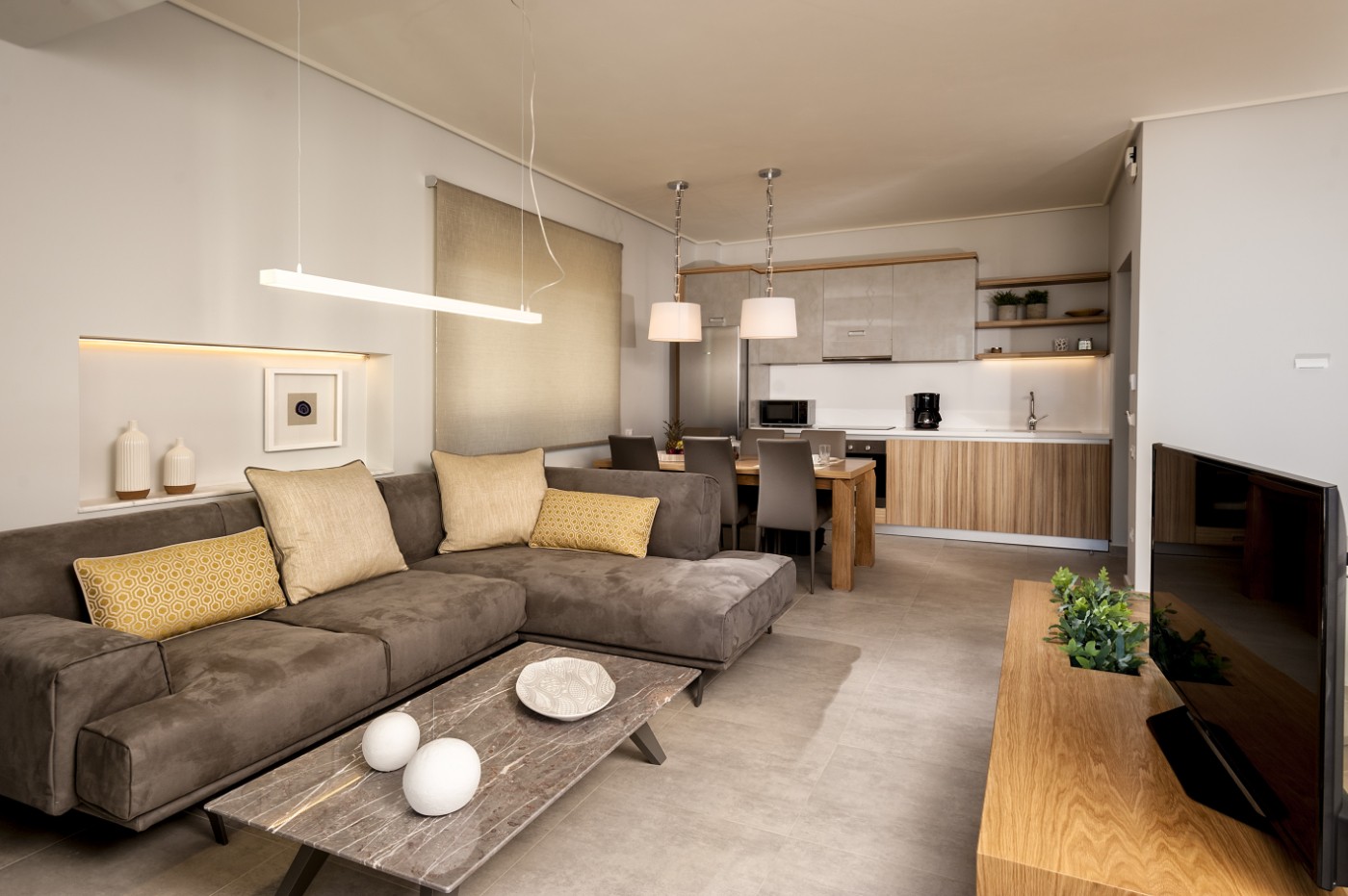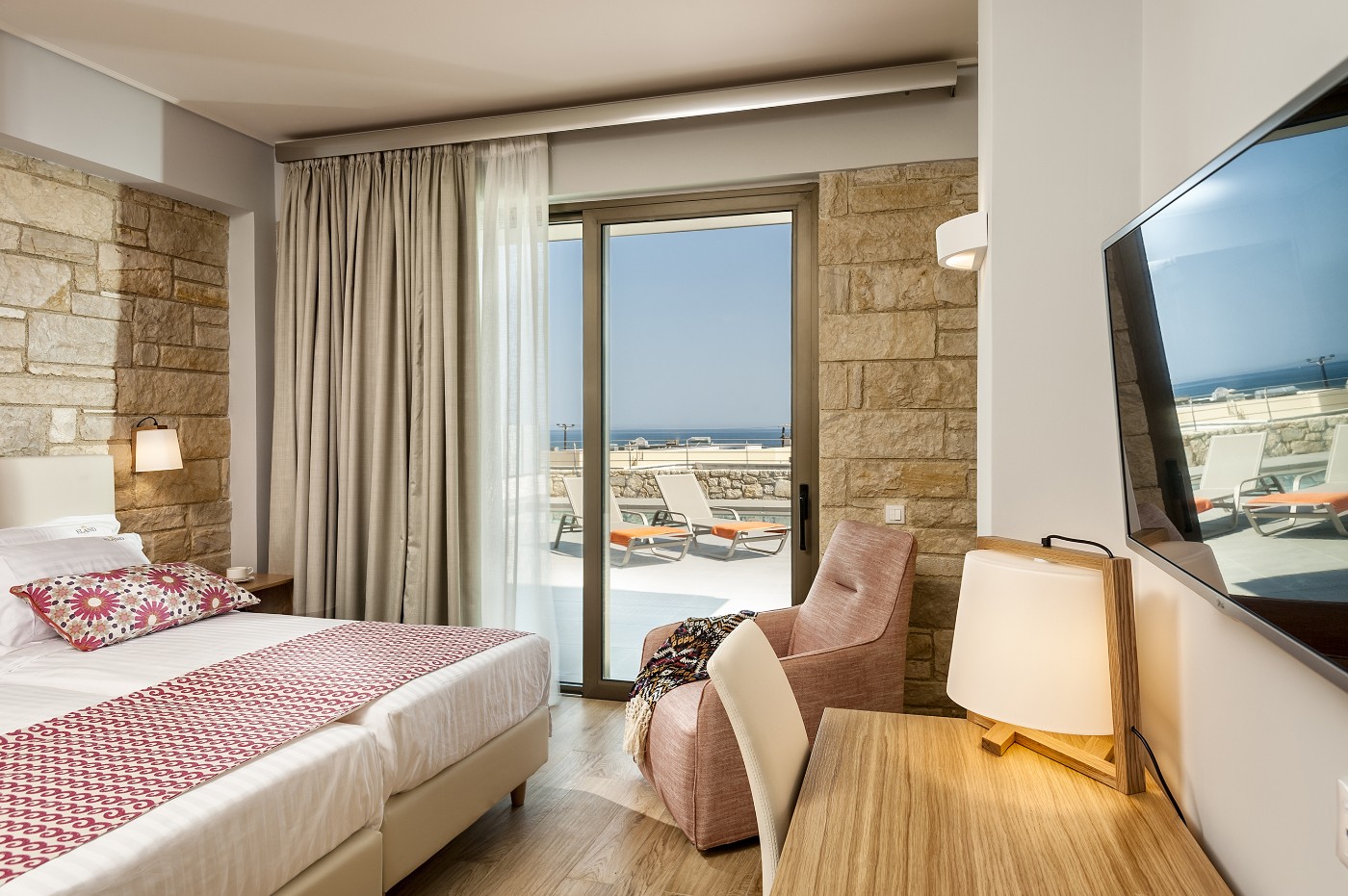 Villa Aiolos is the only villa to have its own mini bar. Inside you will find soft drink, beers, Greek wine and the local Cretan spirit Raki. Next to the minibar there is a sofa to unwind on and watch TV.